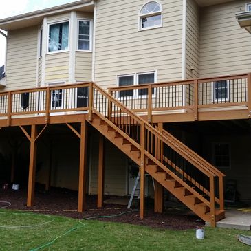 In many cases your existing deck can be superficially wore-out (decking, railing & staircase), but the frame is still in good shape, with many years left to serve and save you money. We give your deck a face-lift so to speak: A Brand new look on the top, and all sides, then reinforcing and using the existing frame. This is called a deck-refurbishing. Great way to save money and get the most bang for your buck.